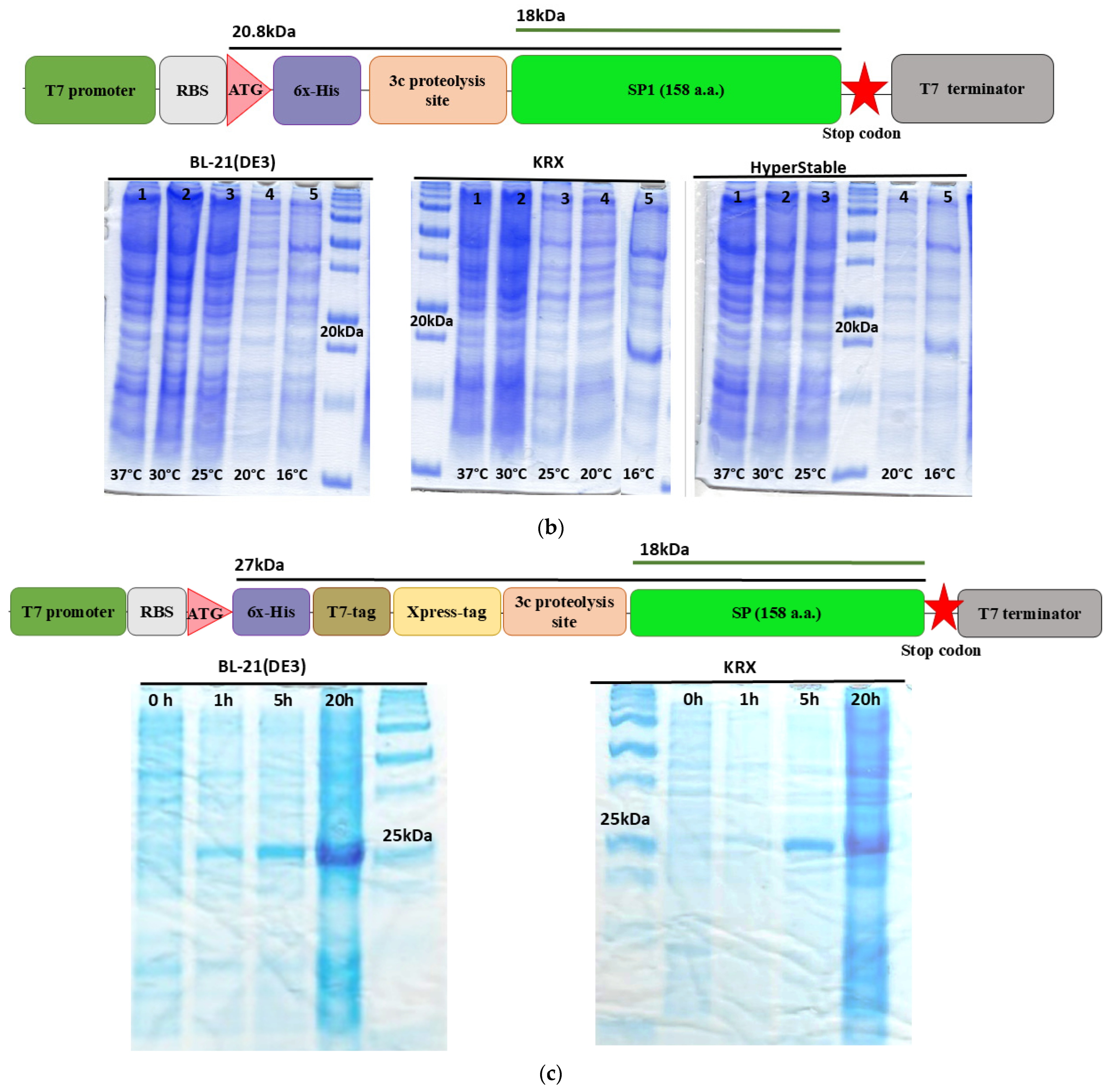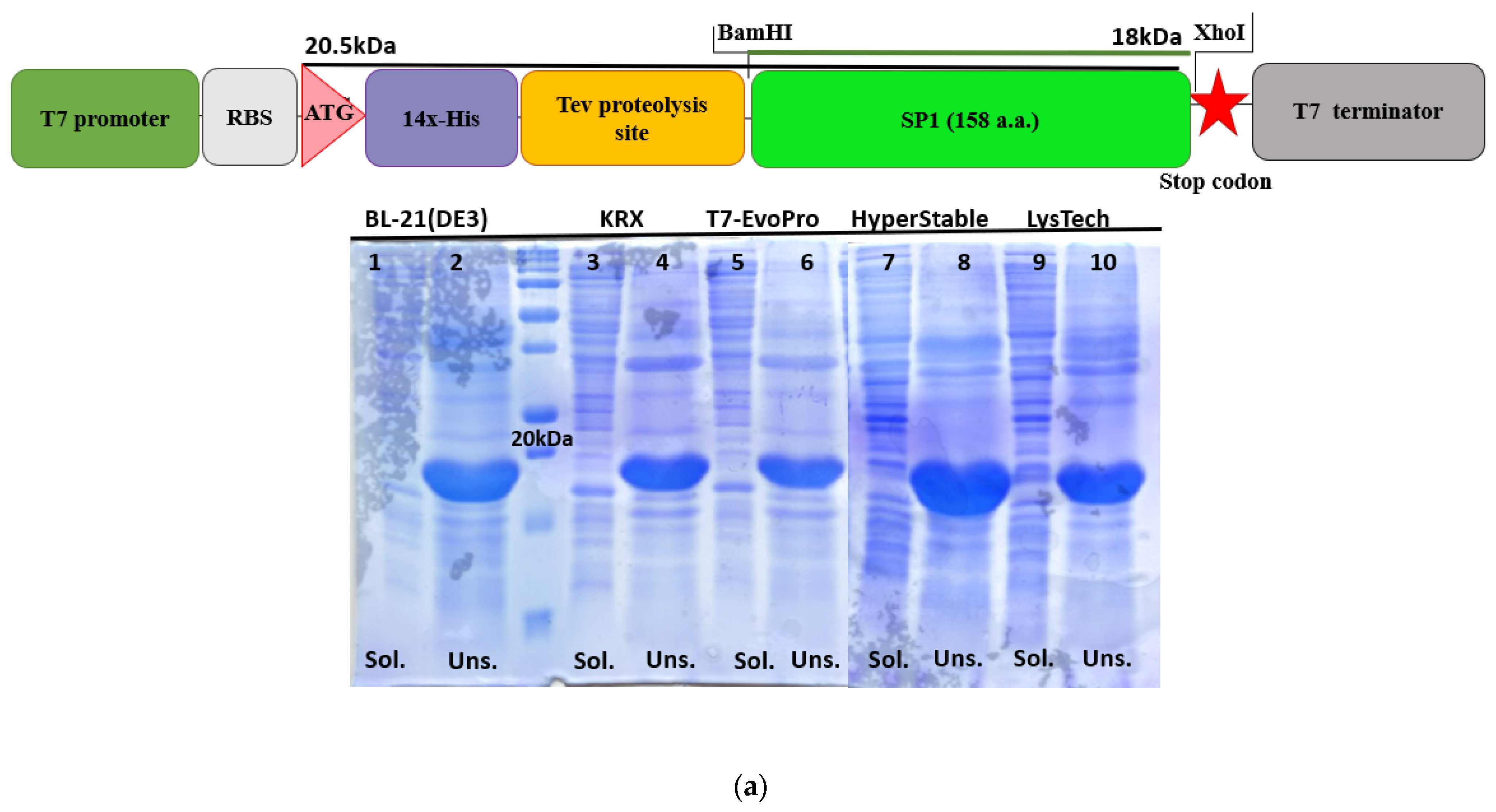 2.4. Expression, Extraction, and Purification of Recombinant HSTV SP1