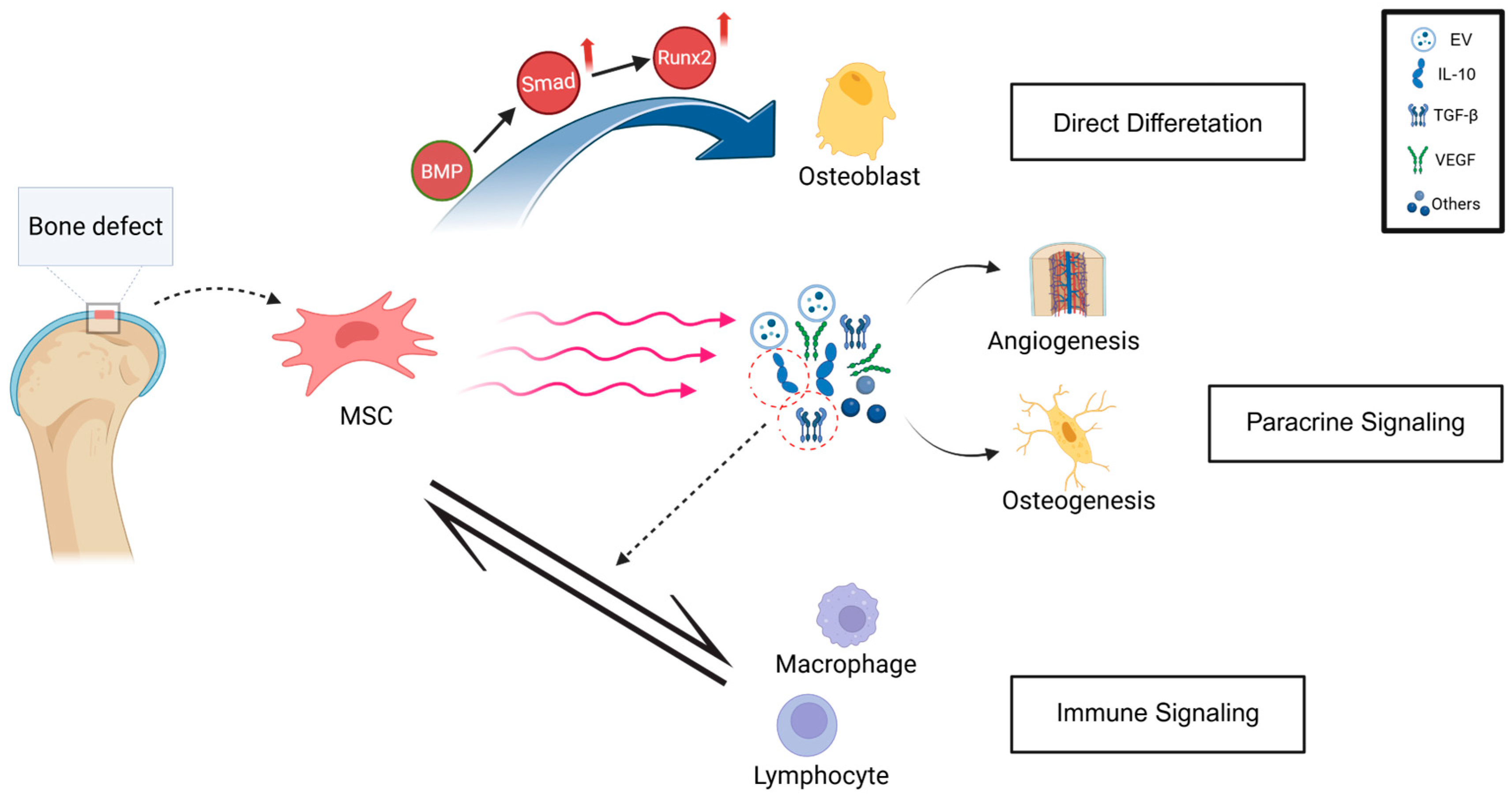 3.2. Mechanisms of Stem Cell-Promoted Osteogenesis