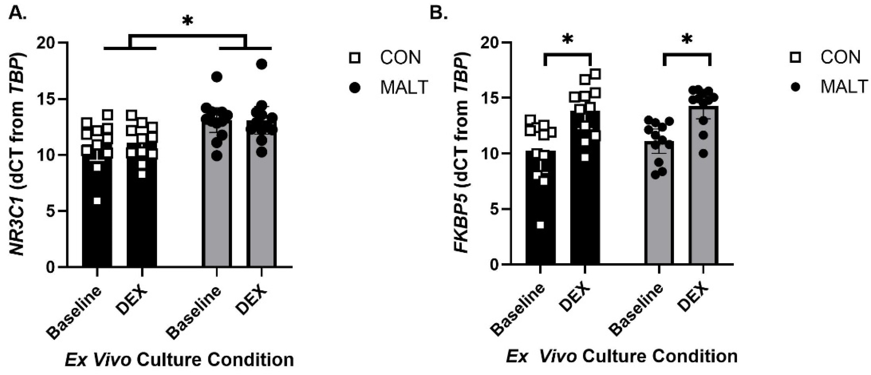 3.2. MALT Rearing Altered Expression of NR3C1 in PBMCs