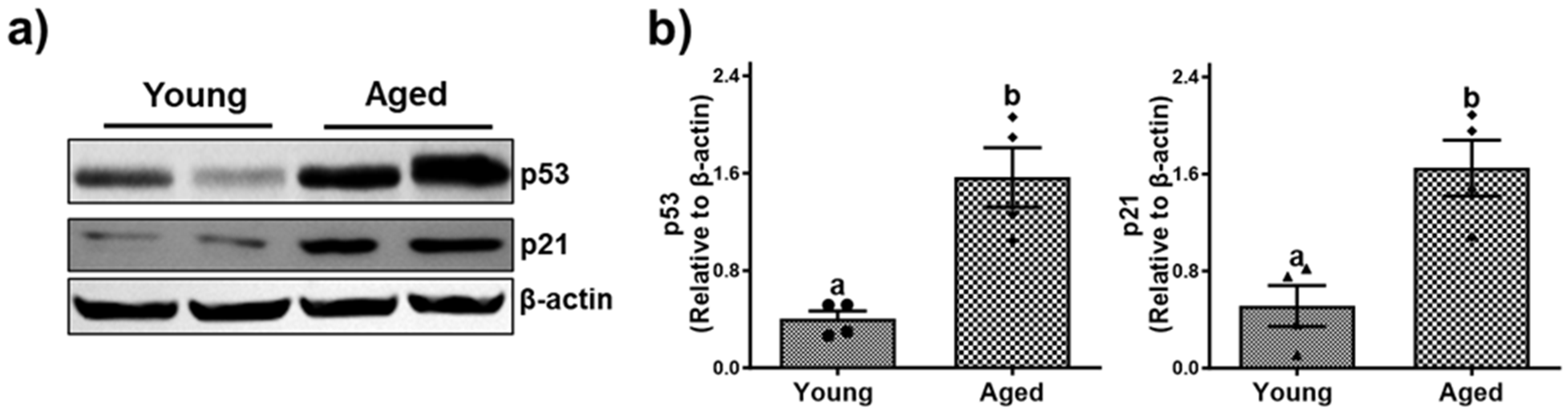 3.5. Aged Mice Demonstrate Signs of Fibrosis