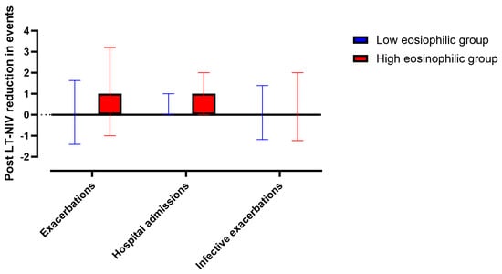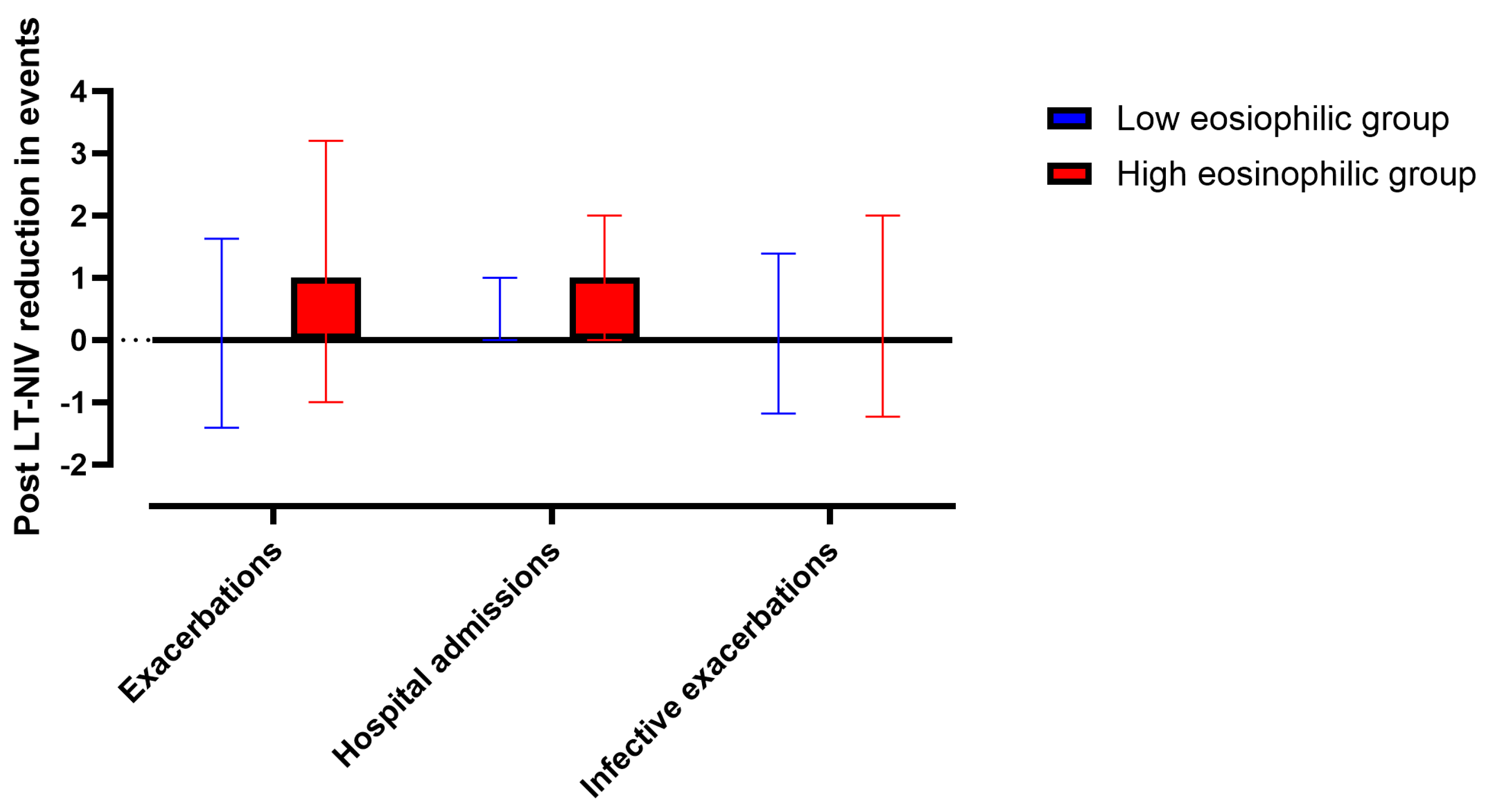 3.4. Changes in Exacerbations and Hospitalisations in Patients with High and Low BEC