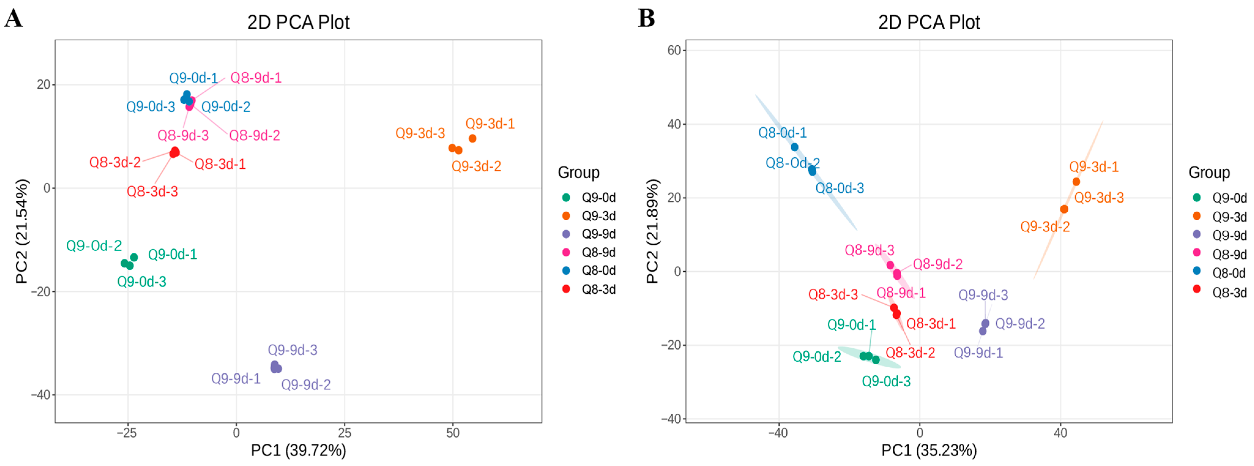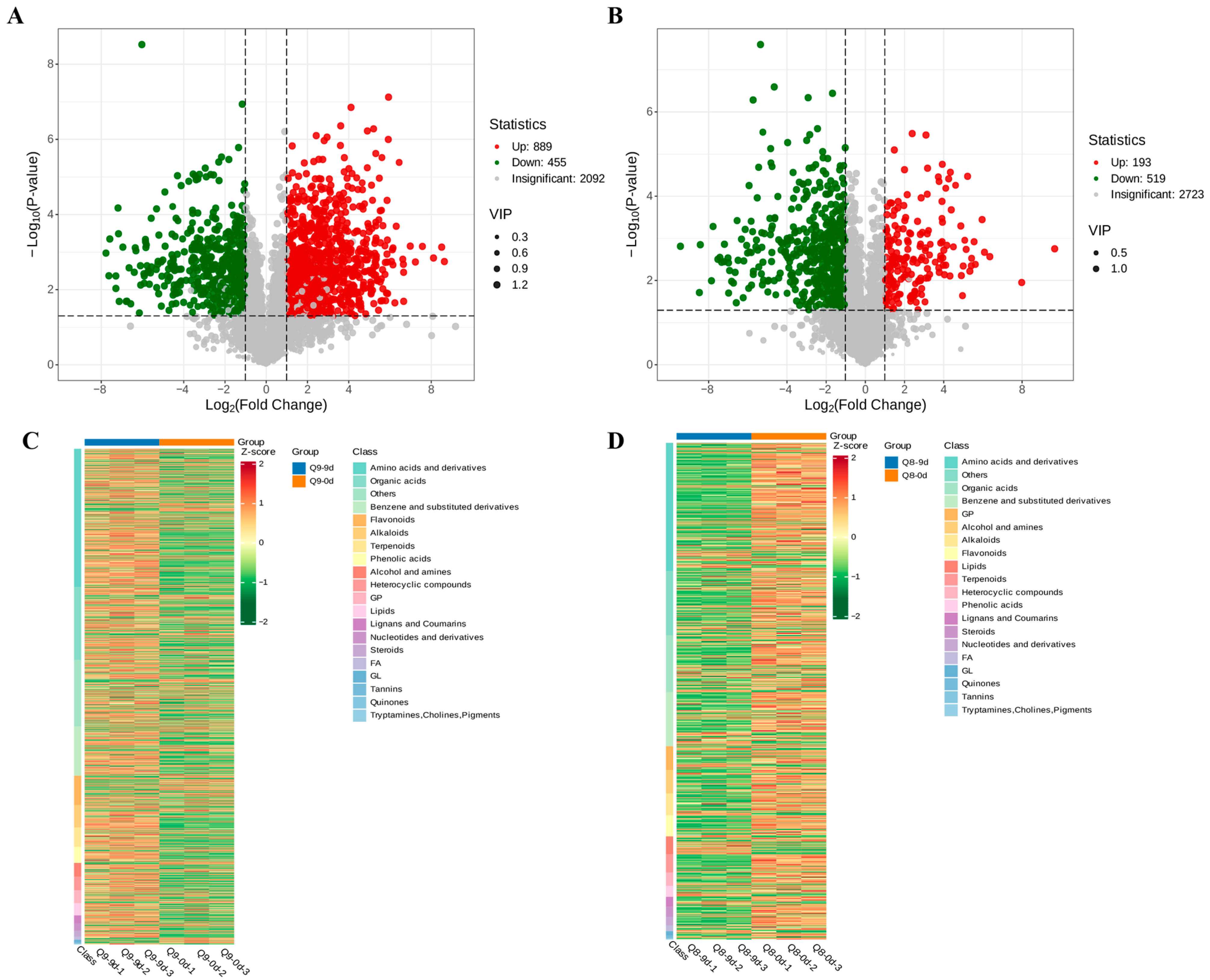 3.9. Metabolic Mechanisms Underlying BSD Resistance in Q8 and Susceptibility in Q9