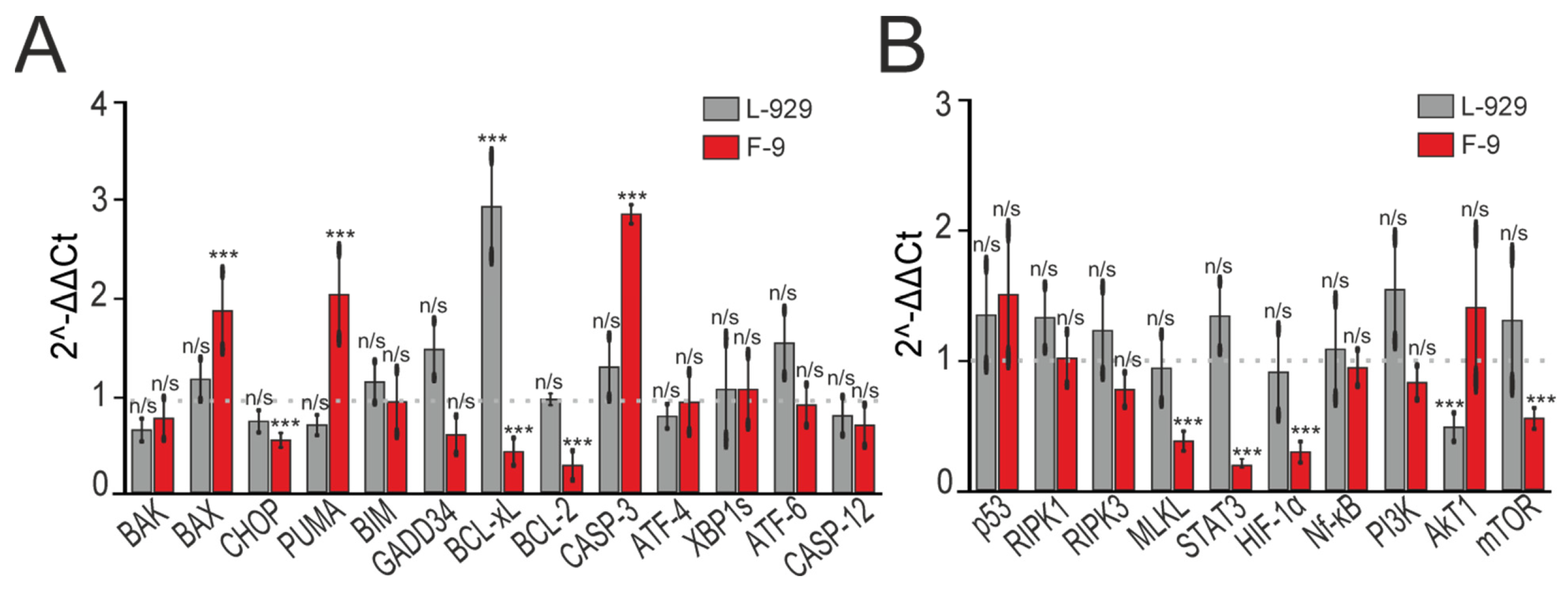 Some results were obtained for key regulators of necroptosis—RIPK1/RIPK3/MLKL. The absence of increased mRNA expression of necroptosis markers should certainly be viewed positively, as this process is frequently implicated in cancer progression [