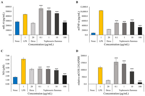 2.2.1. UHPLC–MS/MS Analysis of T. flammea Extract