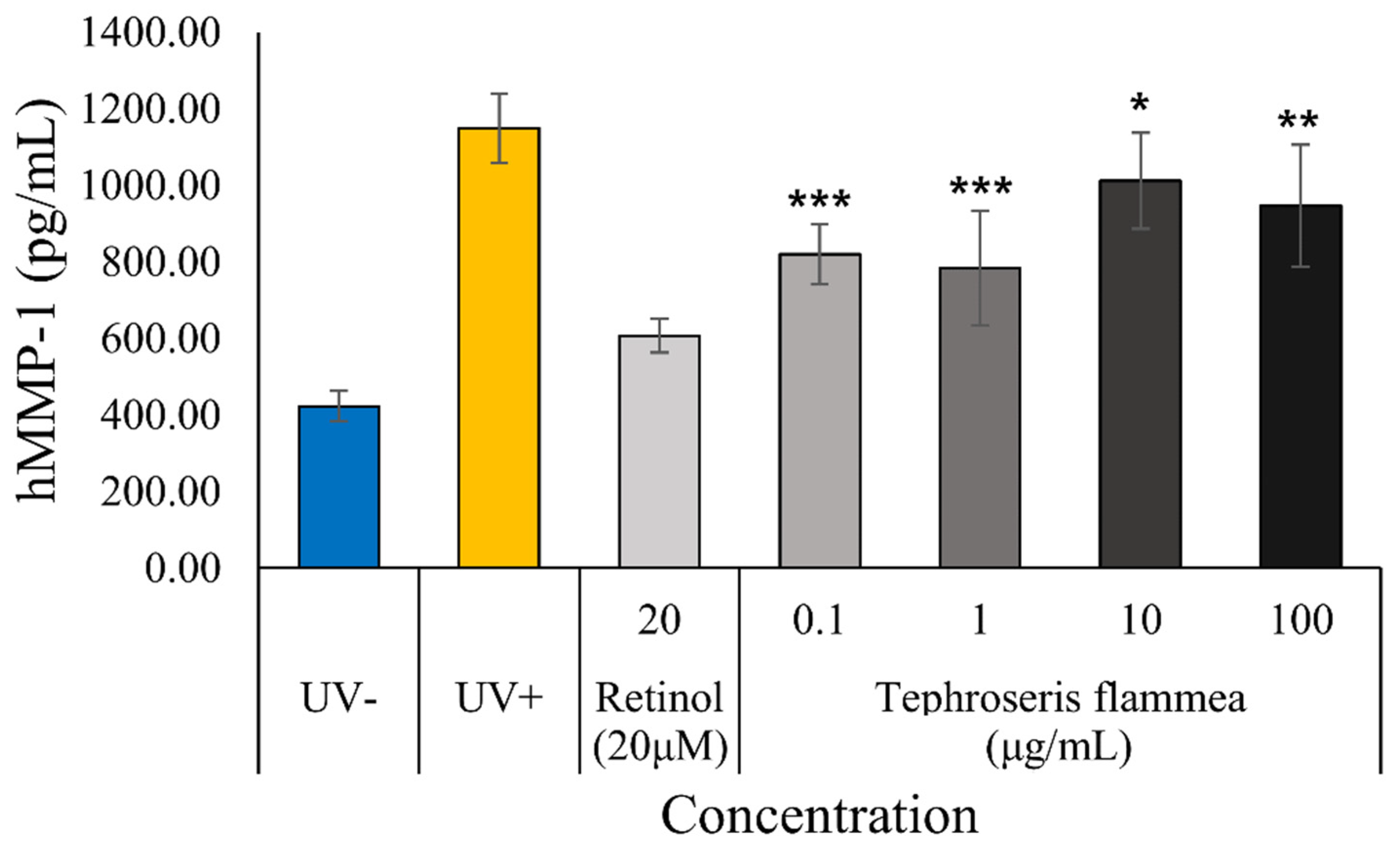 3.7.4. Anti-Photoaging Effect Assessment: Inhibition of MMP-1 Production