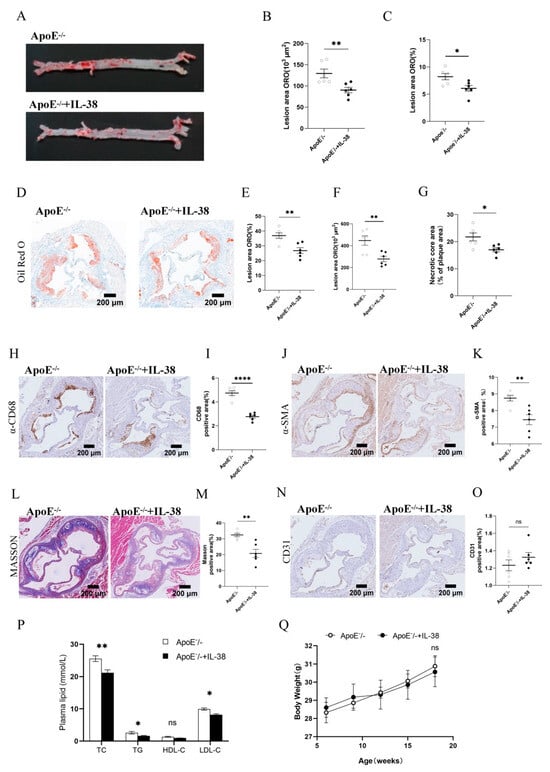 3.1. IL-38 Alleviates Atherosclerosis and Modulates Plaque Composition