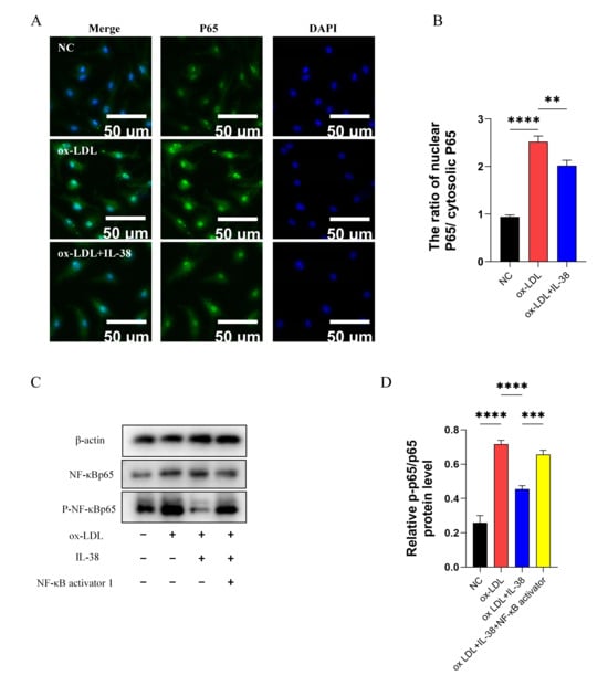 3.2. IL-38 Reduces the Formation of Macrophage-Derived Foam Cells and the Expression of Related Inflammatory Factors