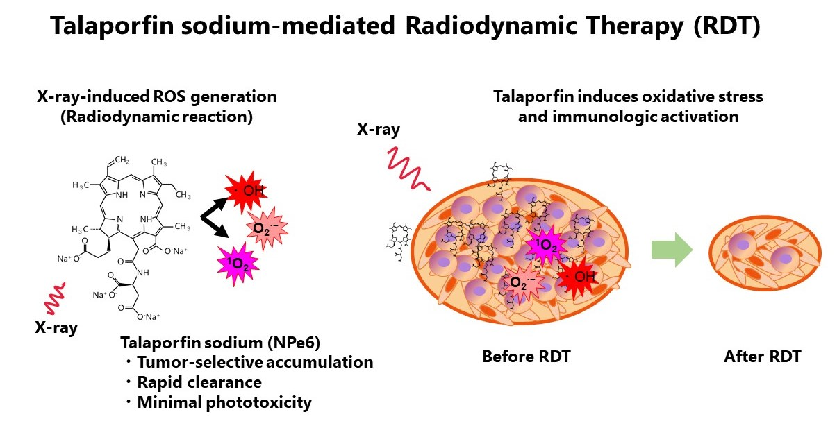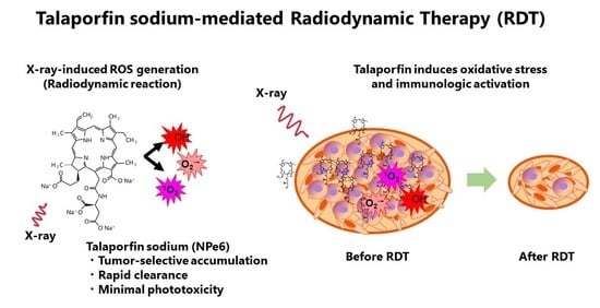 18]. Given its favorable photochemical characteristics, tumor selectivity, and established clinical use, talaporfin represents a promising candidate as a radiosensitizer for RDT. In this study, we investigated the therapeutic efficacy and molecular mechanisms of talaporfin-mediated RDT, focusing on its potential to enhance radiation-induced oxidative stress and antitumor immune responses. Our findings provide new insight into the development of clinically translatable radiosensitization strategies for deep-seated or radioresistant malignancies.