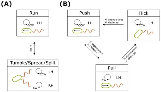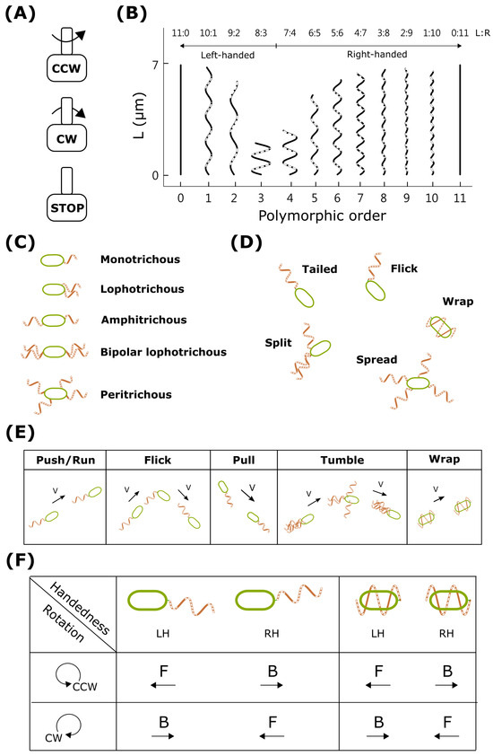 - Thormann, K.M.; Beta, C.; Kühn, M.J. Wrapped up: The motility of polarly flagellated bacteria. Annu. Rev. Microbiol. 2022, 76, 349–367. [Google Scholar] [CrossRef] [PubMed]