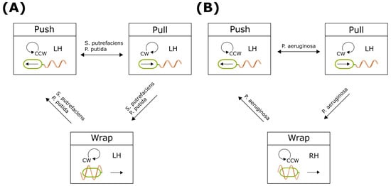 - Tian, M.; Wu, Z.; Zhang, R.; Yuan, J. A new mode of swimming in singly flagellated Pseudomonas aeruginosa. Proc. Natl. Acad. Sci. USA 2022, 119, e2120508119. [Google Scholar] [CrossRef] [PubMed]