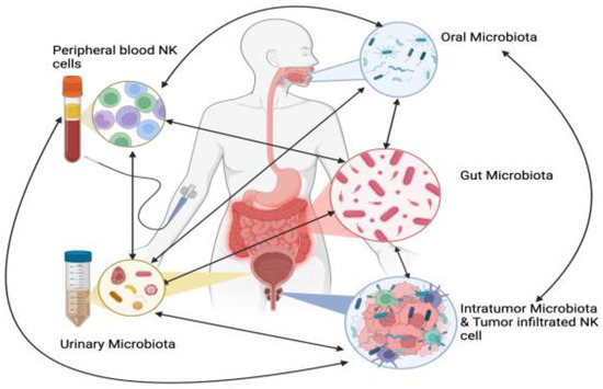 However, in this review, we specifically focus on the interactions between NK cells and the microbiome rather than their interactions with adaptive immune cells such as CTLs and NKT cells. We hypothesize that the NK cell phenotype is the key determinant of immune outcomes. Here, we highlight the three main mechanisms of NK cell dysfunction, as previously described [40]: (1) impaired NK cell proliferation, (2) reduced cytotoxicity, and (3) decreased tumor infiltration.