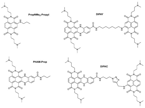 - Platella, C.; Pirota, V.; Musumeci, D.; Rizzi, F.; Iachettini, S.; Zizza, P.; Biroccio, A.; Freccero, M.; Montesarchio, D.; Doria, F. Trifunctionalized Naphthalene Diimides and Dimeric Analogues as G-Quadruplex-Targeting Anticancer Agents Selected by Affinity Chromatography. Int. J. Mol. Sci. 2020, 21, 1964. [Google Scholar] [CrossRef]