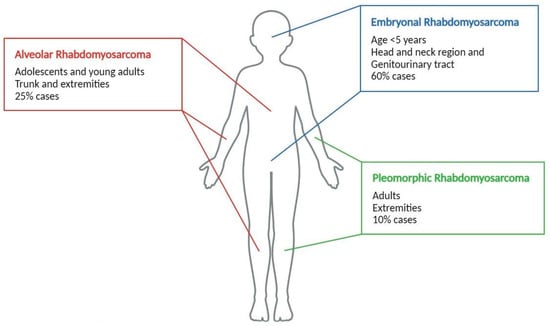 A schematic representation of the main rhabdomyosarcoma histotypes and their clinical features.