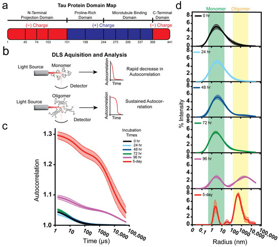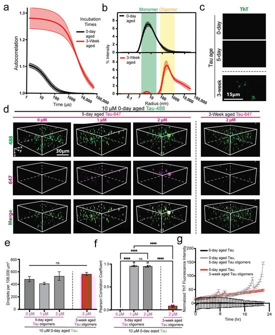 - Gyparaki, M.T.; Arab, A.; Sorokina, E.M.; Santiago-Ruiz, A.N.; Bohrer, C.H.; Xiao, J.; Lakadamyali, M. Tau forms oligomeric complexes on microtubules that are distinct from tau aggregates. Proc. Natl. Acad. Sci. USA 2021, 118, e2021461118. [Google Scholar] [CrossRef]