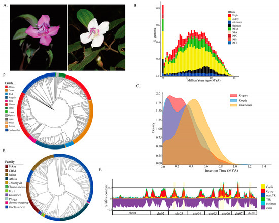 Transposable elements are a significant source of genetic variation, contributing to phenotypic innovation and adaptation through mechanisms such as domestication, exaptation, host gene regulation, retrogene formation, and enhanced genomic plasticity [12,13,14]. While TEs are typically silenced via DNA methylation, histone modification, small RNA-based silencing, and chromatin modifications [15], they can be reactivated by stress or developmental cues [16,17]. Diverse TEs have been shown to regulate various agronomically and ecologically relevant traits, including flower color in morning glories [18], fruit coloration in apples [19], sex determination in melons [20], drought tolerance in maize seedlings [21], and photoperiod sensitivity in maize [22]. Although these TE-mediated trait variations are primarily documented in crops and model species, their impact in natural populations, where diverse abiotic and biotic factors influence TE expression, may be underestimated. The growing availability of non-model plant genomes promises to reveal further TE diversity.
