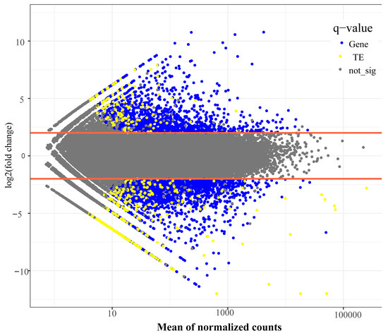 - Jin, Y.; Tam, O.H.; Paniagua, E.; Hammell, M. TEtranscripts: A package for including transposable elements in differential expression analysis of RNA-seq datasets. Bioinformatics 2015, 31, 3593–3599. [Google Scholar] [CrossRef] [PubMed]
