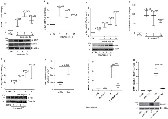 3.3. UA Induces MMP-1 by Activation of MAPK Pathways