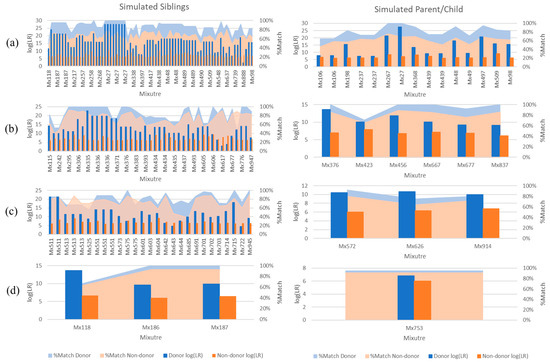 - Kelly, H.; Coble, M.; Kruijver, M.; Wivell, R.; Bright, J. Exploring likelihood ratios assigned for siblings of the true mixture contributor as an alternate contributor. J. Forensic Sci. 2022, 67, 1167–1175. [Google Scholar] [CrossRef] [PubMed]