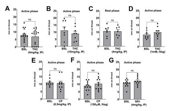 - THC, IP 4 mg/kg, active phase, n = 16;