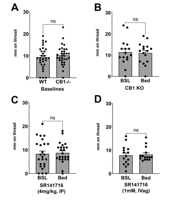 3.3. Effect of CB1 Receptor Block or Deletion on Stimulated Vaginal Secretion