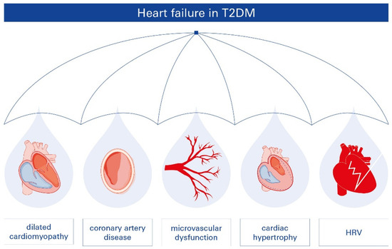 - Holscher, M.E.; Bode, C.; Bugger, H. Diabetic Cardiomyopathy: Does the Type of Diabetes Matter? Int. J. Mol. Sci. 2016, 17, 2136. [Google Scholar] [CrossRef]