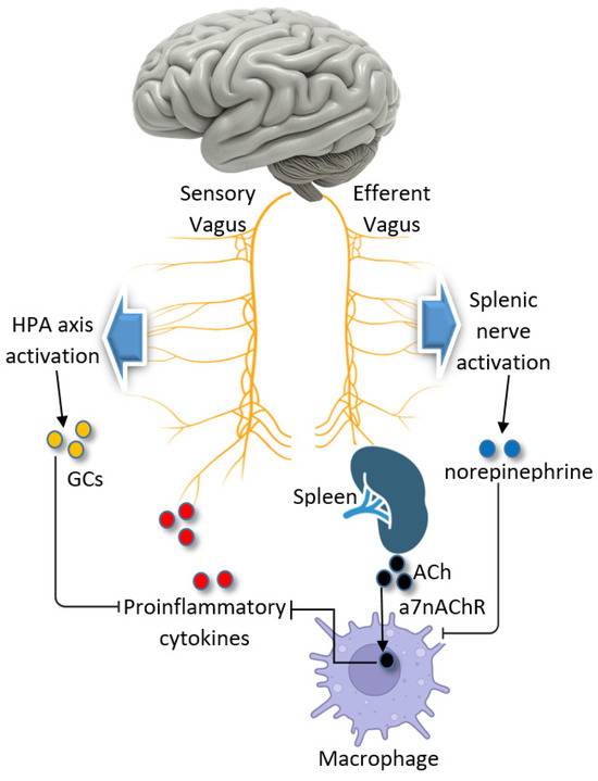 - Tracey, K.J. Physiology and immunology of the cholinergic antiinflammatory pathway. J. Clin. Investig. 2007, 117, 289–296. [Google Scholar] [CrossRef]