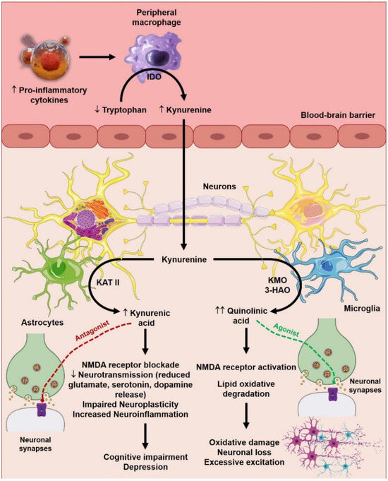 - Willette, A.A.; Pappas, C.; Hoth, N.; Wang, Q.; Klinedinst, B.; Willette, S.A.; Larsen, B.; Pollpeter, A.; Li, T.; Le, S.; et al. Inflammation, Negative Affect, and Amyloid Burden in Alzheimer’s Disease: Insights from the Kynurenine Pathway. Brain Behav. Immun. 2021, 95, 216–225. [Google Scholar] [CrossRef]