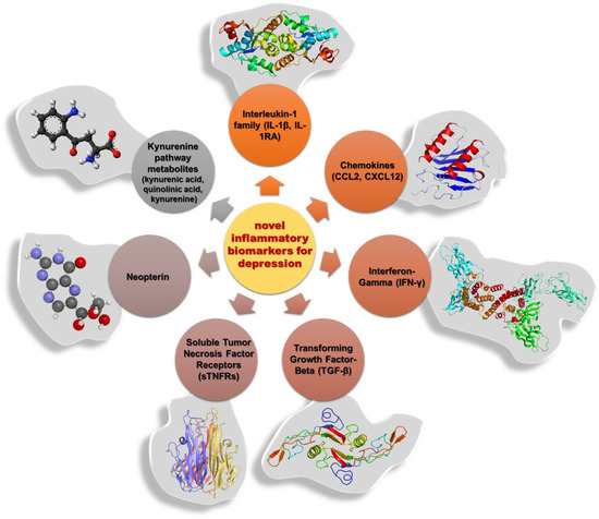 - Kim, K.Y.; Shin, K.Y.; Chang, K.-A. Potential Inflammatory Biomarkers for Major Depressive Disorder Related to Suicidal Behaviors: A Systematic Review. Int. J. Mol. Sci. 2023, 24, 13907. [Google Scholar] [CrossRef]