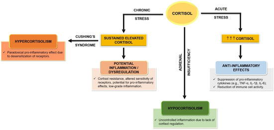 - Yeager, M.P.; Pioli, P.A.; Guyre, P.M. Cortisol exerts bi-phasic regulation of inflammation in humans. Dose Response 2011, 9, 332–347. [Google Scholar] [CrossRef] [PubMed]