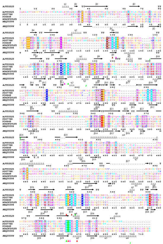 - Robert, X.; Gouet, P. Deciphering key features in protein structures with the new ENDscript server. Nucl. Acids Res. 2014, 42, W320–W324. [Google Scholar] [CrossRef] [PubMed]