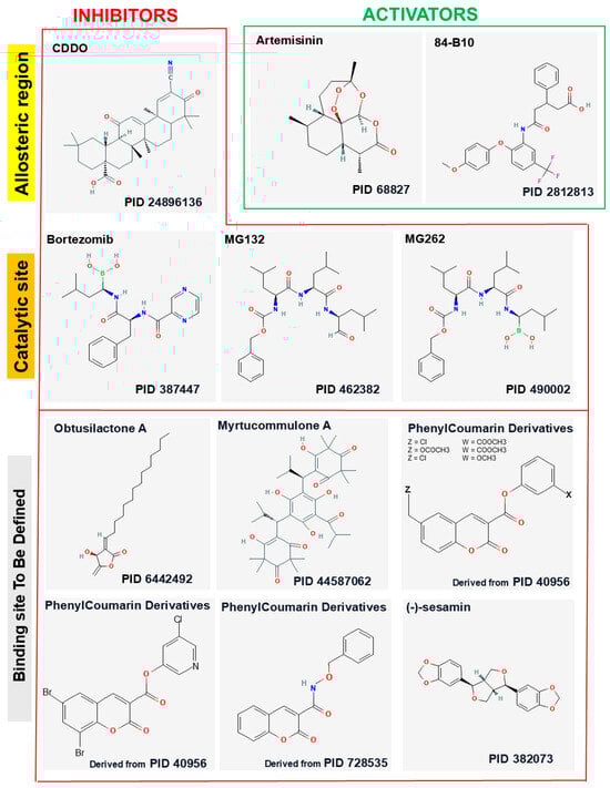 Figure 2. The 2D structures of 10 inhibitors and 2 activators were generated using the PubChem structure editor. The PubChem IDs are reported under the 2D structures of the indicated ligands. Phenylcoumarin analogs lacking on the PubChem database were derived starting from the indicated PIDs.
