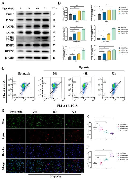 26]. Meanwhile, hypoxia inhibits oxidative phosphorylation, reducing ATP levels and activating AMPK. Activated AMPK suppresses the mTOR pathway, relieving its inhibitory effect on mitophagy [