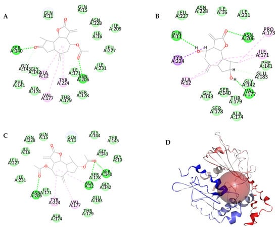 - Khlebnikov, A.I.; Schepetkin, I.A.; Kishkentaeva, A.S.; Shaimerdenova, Z.R.; Atazhanova, G.A.; Adekenov, S.M.; Kirpotina, L.N.; Quinn, M.T. Inhibition of T Cell Receptor Activation by Semi-Synthetic Sesquiterpene Lactone Derivatives and Molecular Modeling of Their Interaction with Glutathione and Tyrosine Kinase ZAP-70. Molecules 2019, 24, 350. [Google Scholar] [CrossRef]