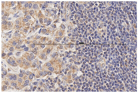 Immunohistochemical staining for MT1 receptors was noted in 100 of 118 (84.7%) tumors and 24 of 25 (96%) metastasized lymph nodes. In the cases of positive IHC expression, there was either cytoplasmic staining or combined cytoplasmic and membrane staining (Figure 1, Figure 2, Figure 3 and Figure 4, scale bar: 200 μm).