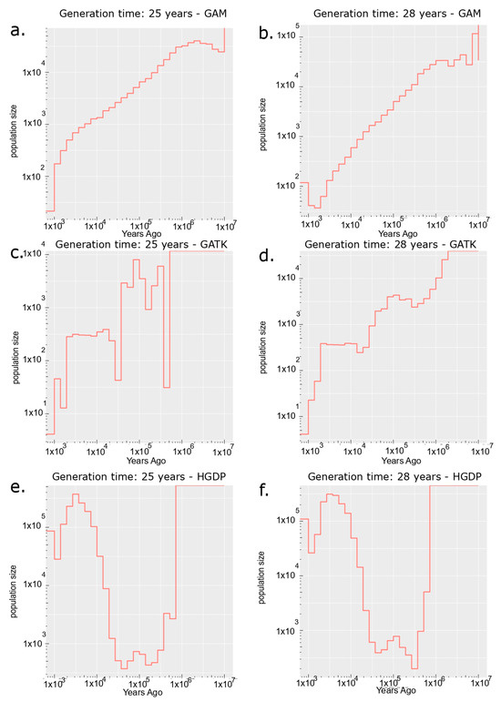 - Excoffier, L.; Foll, M. Fastsimcoal: A Continuous-Time Coalescent Simulator of Genomic Diversity under Arbitrarily Complex Evolutionary Scenarios. Bioinformatics 2011, 27, 1332–1334. [Google Scholar] [CrossRef]