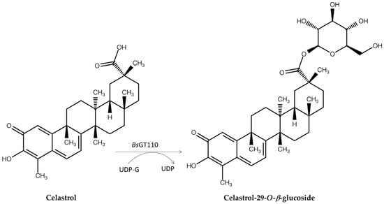 Glycosylation of celastrol to celastrol-29-O-β-glucoside by BsGT110.