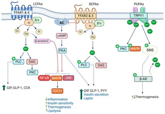 - Ge, H.; Li, X.; Weiszmann, J.; Wang, P.; Baribault, H.; Chen, J.-L.; Tian, H.; Li, Y. Activation of G Protein-Coupled Receptor 43 in Adipocytes Leads to Inhibition of Lipolysis and Suppression of Plasma Free Fatty Acids. Endocrinology 2008, 149, 4519–4526. [Google Scholar] [CrossRef]