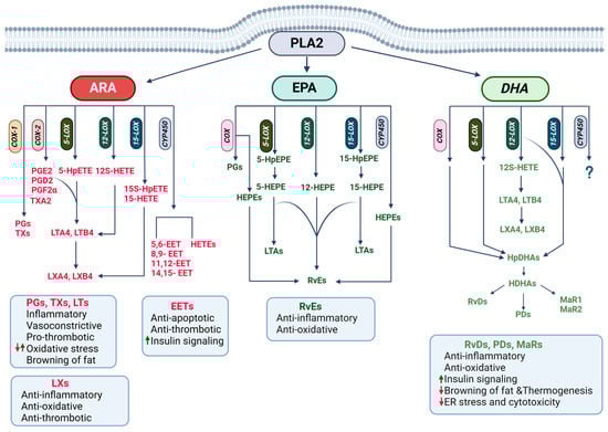- Wang, B.; Wu, L.; Chen, J.; Dong, L.; Chen, C.; Wen, Z.; Hu, J.; Fleming, I.; Wang, D.W. Metabolism Pathways of Arachidonic Acids: Mechanisms and Potential Therapeutic Targets. Signal Transduct. Target. Ther. 2021, 6, 1–30. [Google Scholar] [CrossRef]