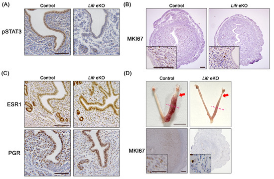 - Cheng, J.; Rosario, G.; Cohen, T.V.; Hu, J.; Stewart, C.L. Tissue-Specific Ablation of the LIF Receptor in the Murine Uterine Epithelium Results in Implantation Failure. Endocrinology 2017, 158, 1916–1928. [Google Scholar] [CrossRef]