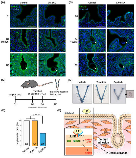 APA StyleTerakawa, J., Nakamura, S., Ohtomo, M., Uehara, S., Kawata, Y., Takarabe, S., Sugita, H., Namiki, T., Kageyama, A., Noguchi, M., Murakami, H., Kashiwazaki, N., & Ito, J. (2025). LIFR-Mediated ERBB2 Signaling Is Essential for Successful Embryo Implantation in Mice. Biomolecules, 15(5), 698. https://doi.org/10.3390/biom15050698