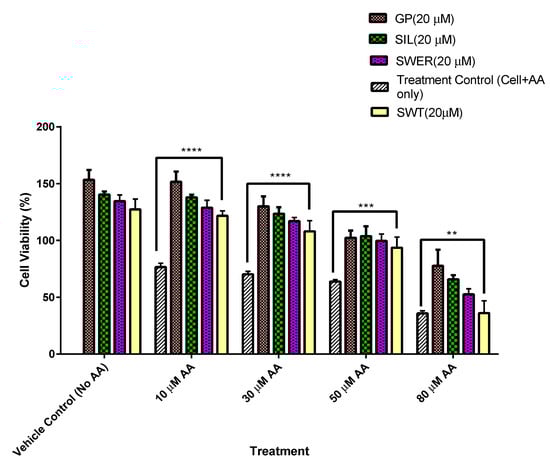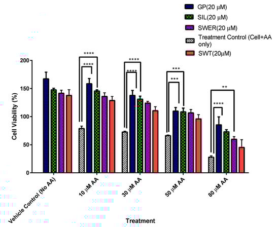 2.3. MTT Assay for Measuring the Cell Viability of Cells Pre-Treated with Phytochemicals Gentiopicroside, Sweroside, and Silymarin in the Presence of Arachidonic Acid