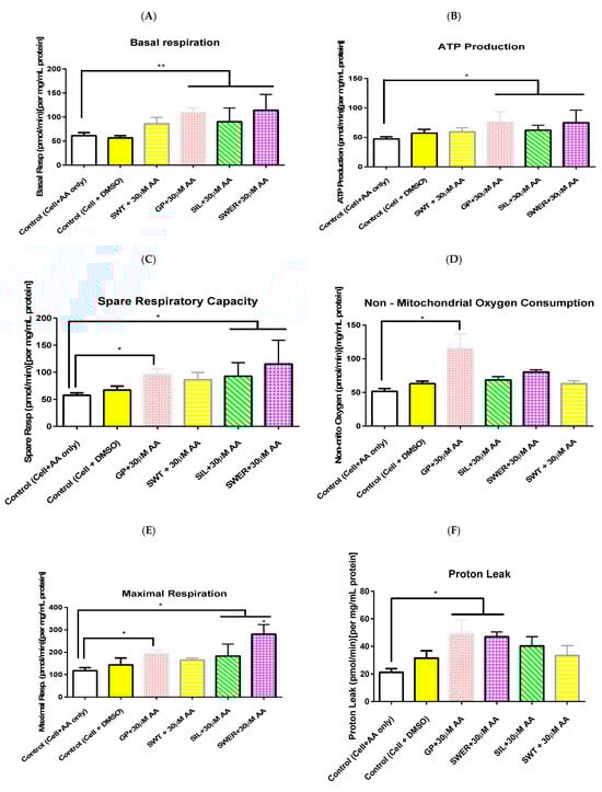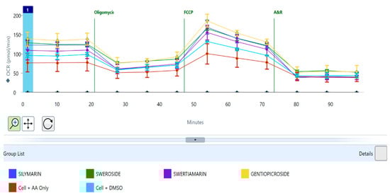 3.3. A Comparison of the Effects of Single Compounds: Gentiopicroside, Sweroside, and Silymarin Pre-Treatment on Hepatocyte Mitochondrial Function in the Presence of Arachidonic Acid