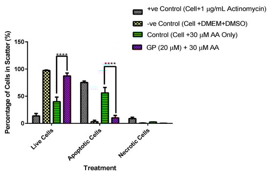 2.6. An Annexin V-FITC PI Assay for Investigating Apoptosis in Hepatocytes Pre-Treated with Gentiana Macrophylla and Single Compounds: Gentiopicroside, Prior to Arachidonic Acid Exposure