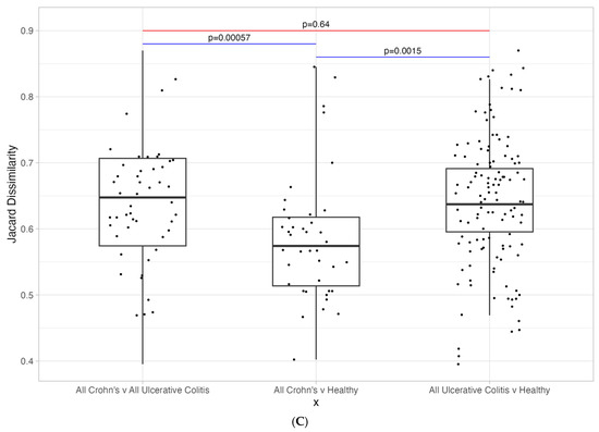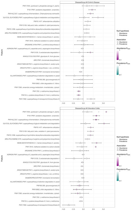 - Lloyd-Price, J.; Arze, C.; Ananthakrishnan, A.N.; Schirmer, M.; Avila-Pacheco, J.; Poon, T.W.; Andrews, E.; Ajami, N.J.; Bonham, K.S.; Brislawn, C.J.; et al. Multi-omics of the gut microbial ecosystem in inflammatory bowel diseases. Nature 2019, 569, 655–662. [Google Scholar] [CrossRef]