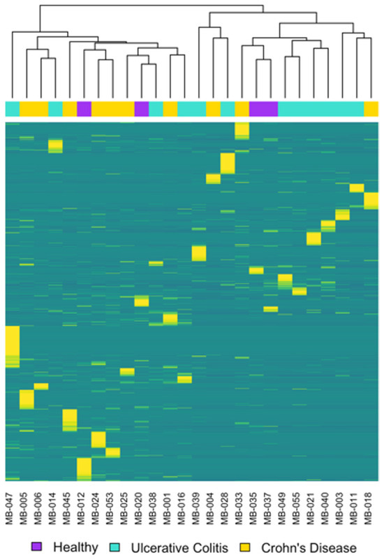 - Sandrin, T.; Pasternak, B.; Jurutka, P.; Buss, K.; Gu, H.; DeSantis, A.; Coker, K. A Multiomics-based Analysis of the Fecal Microbiome of Pediatric Inflammatory Bowel Disease (IBD) Patients Reveals Potential Disease-specific Features More Effectively Than Microbiome Community Composition Sequence Data. Gastroenterology 2025, 168, S84. [Google Scholar] [CrossRef]