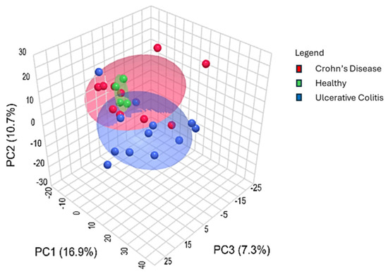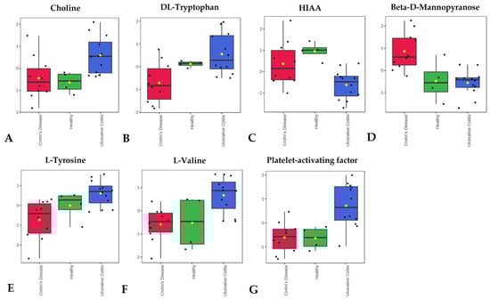 - Martin, F.-P.; Ezri, J.; Cominetti, O.; Da Silva, L.; Kussmann, M.; Godin, J.-P.; Nydegger, A. Urinary Metabolic Phenotyping Reveals Differences in the Metabolic Status of Healthy and Inflammatory Bowel Disease (IBD) Children in Relation to Growth and Disease Activity. Int. J. Mol. Sci. 2016, 17, 1310. [Google Scholar] [CrossRef] [PubMed]