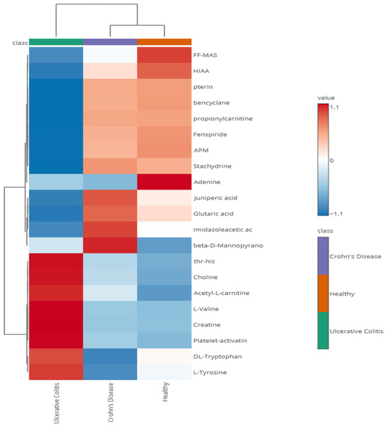 - Filimoniuk, A.; Daniluk, U.; Samczuk, P.; Wasilewska, N.; Jakimiec, P.; Kucharska, M.; Lebensztejn, D.M.; Ciborowski, M. Metabolomic profiling in children with inflammatory bowel disease. Adv. Med. Sci. 2020, 65, 65–70. [Google Scholar] [CrossRef] [PubMed]