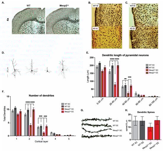 35. Stuss, D.; Boyd, J.; Levin, D.; Delaney, K. MeCP2 Mutation Results in Compartment-Specific Reductions in Dendritic Branching and Spine Density in Layer 5 Motor Cortical Neurons of YFP-H Mice. PLoS ONE 2012, 7, e31896. [Google Scholar] [CrossRef] [PubMed]