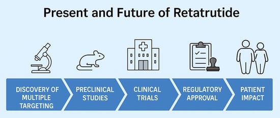 - Ray, A. Retatrutide: A Triple Incretin Receptor Agonist for Obesity Management. Expert. Opin. Investig. Drugs 2023, 32, 1003–1008. [Google Scholar] [CrossRef]