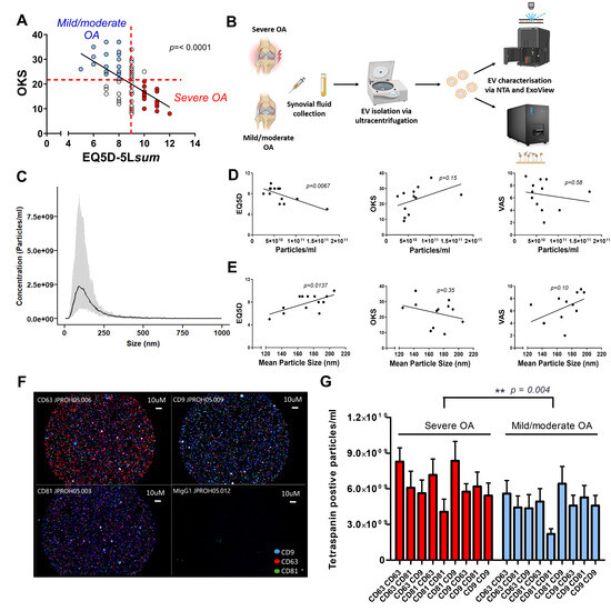 - Zhang, X.; Ma, S.; Naz, S.I.; Jain, V.; Soderblom, E.J.; Aliferis, C.; Kraus, V.B. Comprehensive characterization of pathogenic synovial fluid extracellular vesicles from knee osteoarthritis. Clin. Immunol. 2023, 257, 109812. [Google Scholar] [CrossRef]